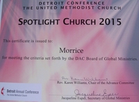 Morrice UMC was a Spotlight church for the Detroit Conference in 2015. To receive this designation, eight steps in mission giving must be fulfilled. Thank you to all who give so faithfully so that we may be in mission locally, within our district and conference, nationally and internationally. This helps us fulfill the Great Comission, to make disciples of all nations.